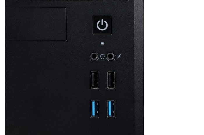 電源ボタンをはじめ、マイク端子やヘッドホン端子、USB 2.0×2、USB 3.0×2 をパソコン本体のフロント部に集約。よく使う機能にすぐアクセスできるので、日々の操作もスムーズで快適です。
