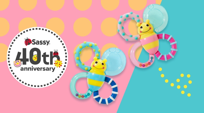 株式会社ダッドウェイ(本社:神奈川県横浜市、代表取締役社長:白鳥 公彦)が、日本正規総代理店として輸入販売する『Sassy(サッシー)』は2021年にブランド誕生40周年、日本上陸20周年のアニバーサリーイヤーを迎えました。これを記念して、日本において一番人気のロングセラー商品『カミカミみつばち』の日本限定カラー2色の販売を開始しました。『カミカミみつばち(バンブル・バイツ)』は、世界累計500万個以上を販売し、Sassyブランドのアイコンアイテムとして世界中の赤ちゃんに愛されています。
