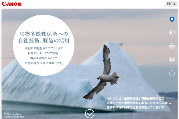キヤノンは、生物多様性が将来の持続可能な社会にとって重要な基盤であることを深く認識し、生物多様性に資する行動を推進しています。この度、キヤノンが行っているさまざまな生物多様性保全活動の中から、自社のイメージング技術、製品を活用した生物多様性の保全活動を取り上げた特集コンテンツを公開しましたのでぜひご覧ください!