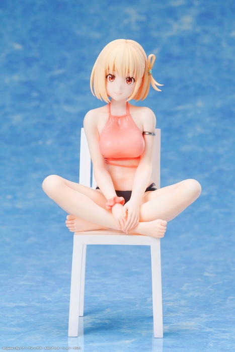 千束らしいスポーティな水着を身に着け、座った姿で立体化!