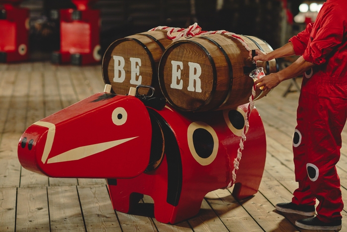 新たに体長1.5mの「巨大赤べこビアサーバー」が新登場します。赤べこがビール樽を背負った形をしており、背負った樽からビールを注ぐことができます。注いだビールと共に、ビアサーバーと記念撮影するのがおすすめです。ビールを注ぐカップにも、赤べこの模様が描かれています。カップの種類は数種類あるので、どんなカップになるかお楽しみです。