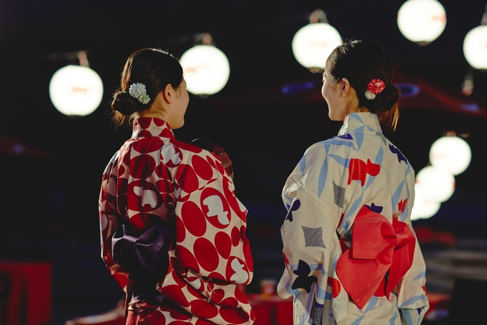 当ビアガーデンではゲストも赤べこに扮して宴を楽しみます。心も涼やかに楽しめるよう、2023年は新たに「赤べこ浴衣」をご用意。当ホテルのオリジナルのデザインで、赤べこをベコジェニックに身にまとうことができます。さらに、赤べこなどのスタンプを用いて自由に絵柄を付けられる「うちわ」をプレゼント。浴衣とうちわを身に着けることで、より一層ビアガーデンを楽しめます。