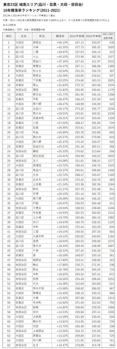 ■城南エリア 10年騰落率ランキング(2011-2021)
