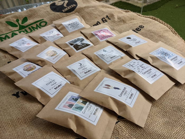また、飲料としての提供だけでなく、イベントではドリップバッグになった商品も販売します。ユワンガンの焙煎温度別の飲み比べセットを始め、RoCoBeLの様々なブレンドをラインナップ。さらに、RoCoBeLフレンズの店舗がオリジナル・ブレンドとして独自で販売している商品も特別に販売します。