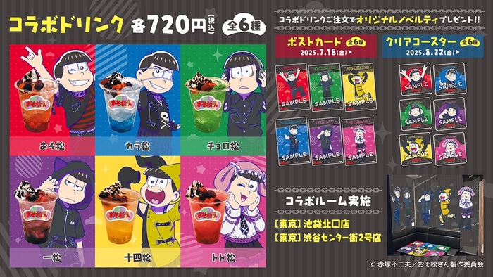 対象店舗にて、『おそ松さん』・コラボドリンク全6種を販売いたします。