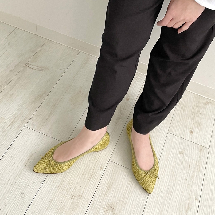 気温が20度を超える日が増えてきたら軽やかに履ける【ファルファーレ】のエコメッシュギャザーバレエが気分です。メッシュならではの通気性と、見た目にもさわやかで、ポインテッドトゥのデザインが大人っぽいおすすめの一足です。