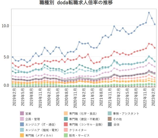 ※1:doda転職求⼈倍率レポート_2023年2⽉より(https://doda.jp/guide/kyujin_bairitsu/data/)