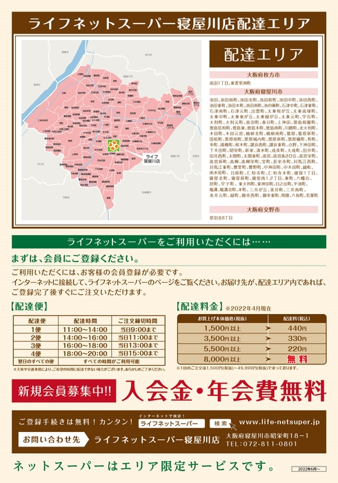 「ライフネットスーパー寝屋川店」新規会員様募集中!