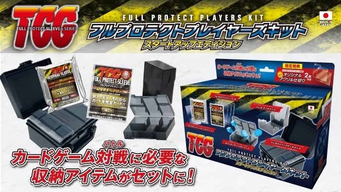 カードゲーム対戦に必要な収納アイテムをひとまとめにした特別なセット、『フルプロテクト プレイヤーズキット』を河島製作所が発売します。大人気のフルプロテクトスリーブRをはじめ、コレクションや持ち運びに便利なオリジナルアイテムが5点入っています。