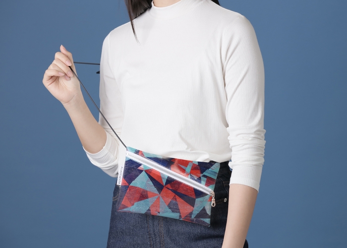 廃棄ビニール傘をリメイクした一点物の「サコッシュバッグ」