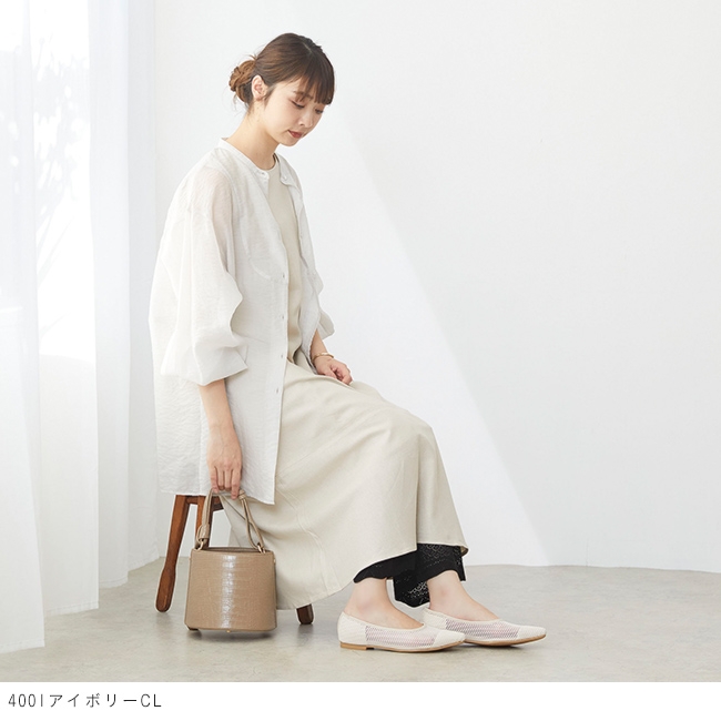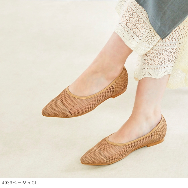 女性らしいエレガントなメッシュフラットヒールパンプス