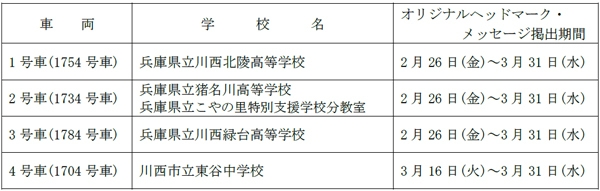 能勢電鉄では、今年度末に卒業を予定されている沿線の学校の生徒様へ向け、沿線代表の5校のご協力のもと、在校生、教職員の皆様からの祝福メッセージを彩った卒業列車“祝電(しゅくでん)”(1編成)を、期間限定で運行します。学業を修められた生徒様へ対して、卒業のお祝いと未来への新たな一歩を応援する想いをのせて運行します。