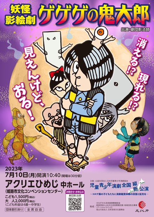 株式会社劇団影法師 妖怪影絵劇『ゲゲゲの鬼太郎』【姫路公演】が2023年7月10日 (月) にアクリエひめじ 中ホール(姫路市文化コンベンションセンター)(兵庫県姫路市神屋町143-2)にて上演されます。