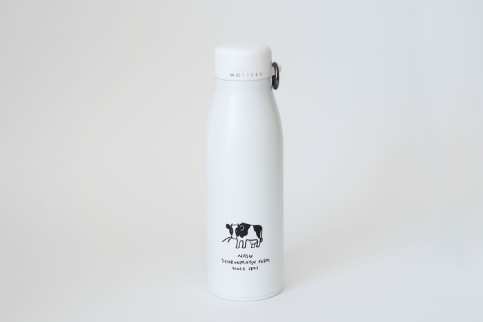 ”セボン”をワンポイントに、ミルク缶を彷彿させるデザインのサーモステンレスボトル。口も大きく洗いやすい。保温・保冷対応。持ち運びに便利なストラップ付き。