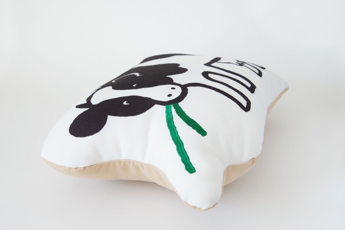 ”セボン”がプリントされたかわいらしいクッション。ドライブのおともに、癒しのデスクピローとしても。環境に優しいGRS認証*のリサイクル素材100%仕様。(大きさ:50㎝×32㎝)