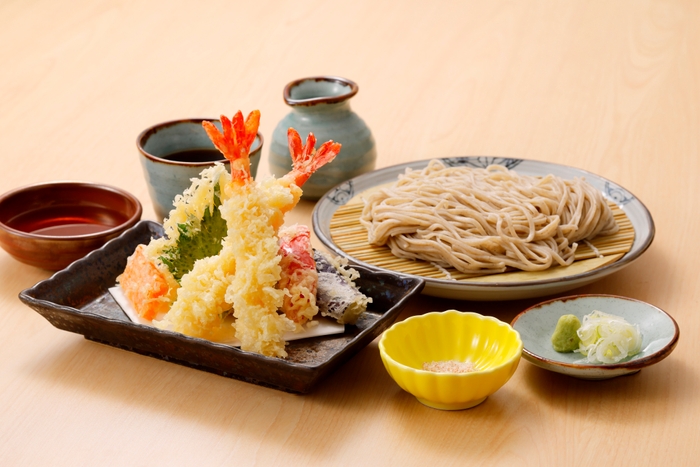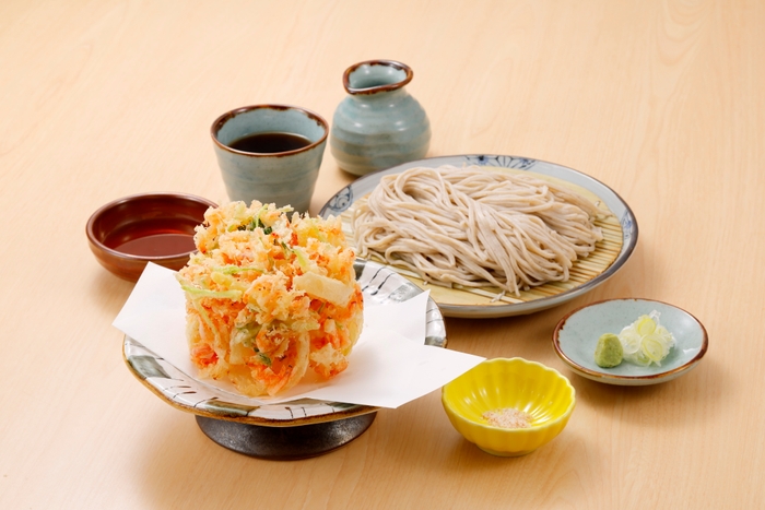 季節の食材を練り込んだ店内製麵の生そば、四季折々の旬の食材を使用し米粉を配合の衣でサクサク食感の揚げたて熱々な「四季揚げ」や天ぷらなどをご用意。