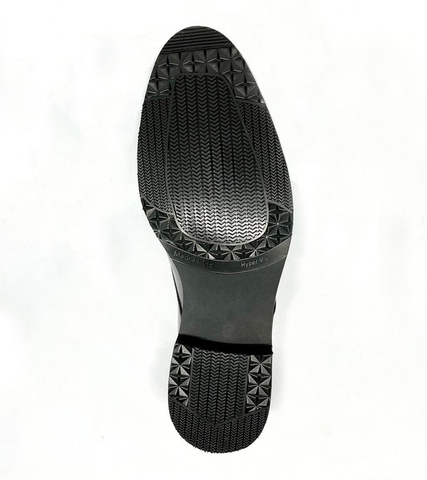 通常の路面はもちろん、悪天候時や油・水にも優れたグリップ力(通常のラバーソールの2.5倍以上)を発揮。安全靴や介護靴、スポーツ用品など幅広い分野に採用されています。