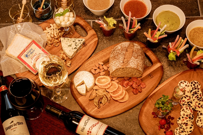 チーズ4種、生ハム、ドライフルーツ、ナッツ類、各種ブレッド、スティック野菜、他