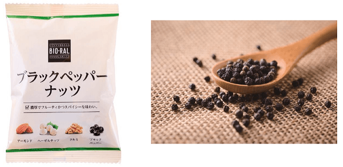 ライフが自信を持っておすすめする「今月の見て見て」の9月商品に選ばれた「BIO-RAL 低糖質ナッツ ピンクとブラックのペッパー風味」は、「マダガスカル産ピンクペッパー」と「カンボジア産ブラックペッパー」を使用した「BIO-RAL ナッツシリーズ」の新商品です。これまで販売していた素焼きの商品に加えて、ピンクとブラックそれぞれのペッパーの香りがクセになる新フレーバーが誕生いたしました。