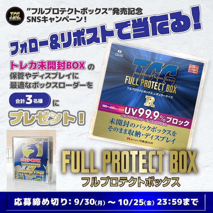 フルプロテクトボックス発売記念SNSキャンペーン開催!UV99.9%カット!未開封BOXをそのまま保護&コレクションできるフルプロテクトボックスが2024年9月27日(金)から発売開始!