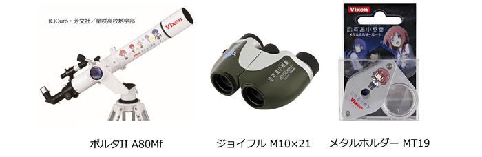 総合光学機器メーカー株式会社ビクセン(本社:埼玉県所沢市、代表取締役:新妻和重)は、TVアニメ「恋する小惑星(アステロイド)」とコラボレーションし、作中に登場するアイテムにオリジナルデザインを施した商品を2020年5月1日(金)に発売します。ラインナップは、天体望遠鏡、双眼鏡、ルーペの3商品です。