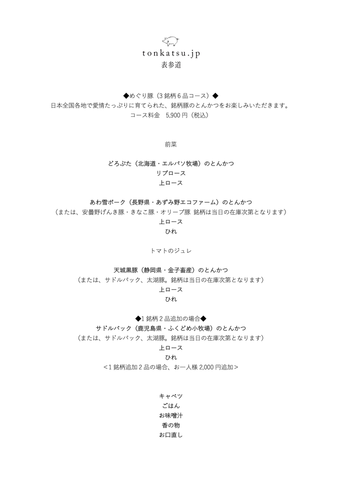 とんかつ王子プロデュース! 日本全国の銘柄豚とんかつを食べ比べられる「めぐり豚」を、 12月14日から「tonkatsu.jp 表参道」にて提供開始