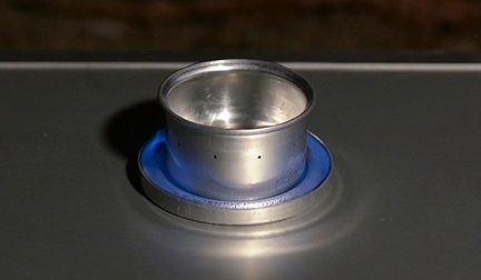 限られた燃料注入量で、無駄のない高効率な燃焼を求め、素材、構造、燃料孔の大きさ、孔位置の割り出しなど、試行錯誤を繰り返し、1回の燃料注入(最大15ml)で、約300mlのお湯を沸かせることが出来ました。綺麗な青い炎で燃焼するのは、高効率で燃焼している証です。