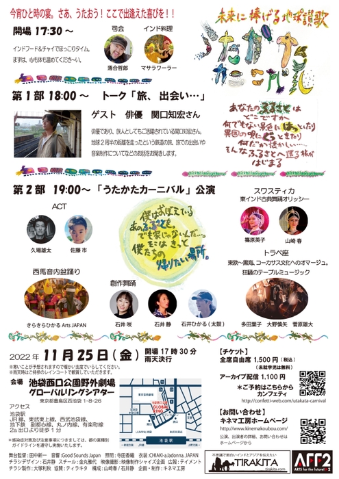 キネマ工房 野外公演 『うたかたカーニバル』が2022年11月25日 (金)に池袋西口公園野外劇場グローバルリングシアター(東京都豊島区西池袋1-8-26)にて開催されます。