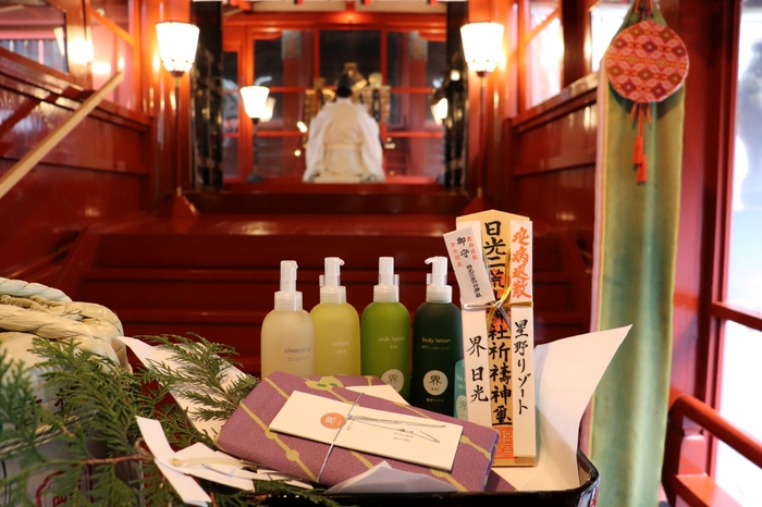 界 日光の客室に設置されたアメニティにも鎮静祈願を施し、客室にいながらも早期鎮静を願いながら二荒山神社中宮祠の恩恵を授かることができます。