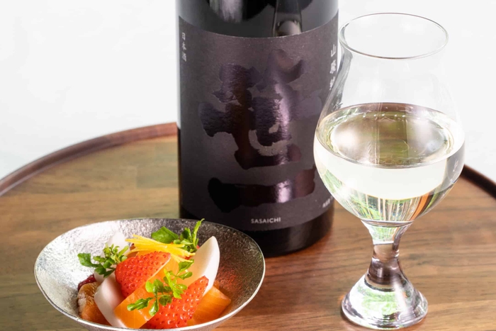 本プログラムで使用するのは、1661年(寛文元年)創業の笹一酒造の日本酒です。チェックイン後にはウェルカムドリンクとして「笹一 山廃純米大吟醸 甲州山田錦35」を楽しみます。フレッシュな甘味を持つ日本酒に合わせて、苺や大鱒を使ったおつまみを提供します。日本酒そのものの味わいやおつまみとの相性を楽しみ、翌日以降の体験へと気持ちを高めます。
