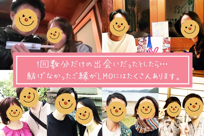 良縁フェスでは、全国を横断するような遠距離カップル、一回りも違う年の差カップル、結婚歴ありカップルなど、普段の生活のなかではなかなか得られないマッチングが次々と成立しています。自治体婚活LMOは、Lifedesign Matching Onlineの略。すなわち、自分らしい結婚と人生を考え、それをお互いすりあわせることでより良いパートナーシップを築いていただきたいという思いが込められています。いろいろな話題で交流を何度も重ね、お互いのことをよく理解していく婚活スタイルなのです。さらに、同世代の独身者、同性同士も一緒に交流することで、自身の結婚観や生き方を改めることもできます。もうお分かりでしょうか? 1〜2回ですぐ結論を出したくなるような方に、当フェスはおすすめできませんので、どうぞご注意ください。