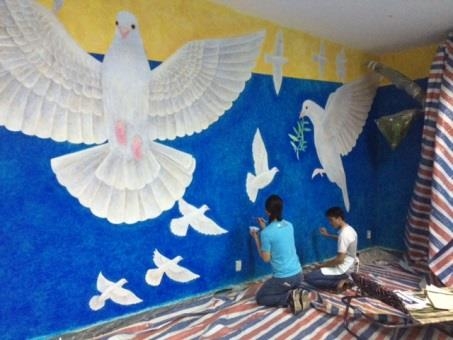 ベトナム戦争終結から42年を迎えた今年、平成29年(2017年)7月8日(土)~31日(月)の24日間で、ベトナム ホーチミン市にあるベトナム戦争の記録が保存・展示されている、戦争証跡博物館内の壁画に平和の象徴である白い鳩を描くプロジェクトが実施されました。本プロジェクトのコーディネーターとして本学文芸学部文化デザイン学科教授の西野昌克が参加し、日本とベトナムの平和友好の壁画を完成させました。
