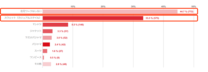 スウェット(カジュアルスタイル)が33.3% / 在宅ワークはしないが44.7%