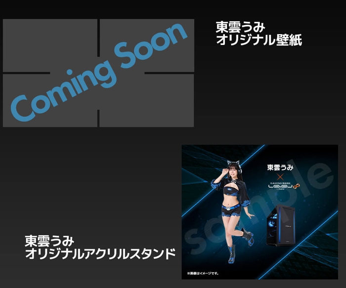 東雲うみ LEVEL∞コラボゲーミングPCをご購入頂いた方にもれなく東雲うみオリジナル壁紙とアクリルスタンドをプレゼントいたします。