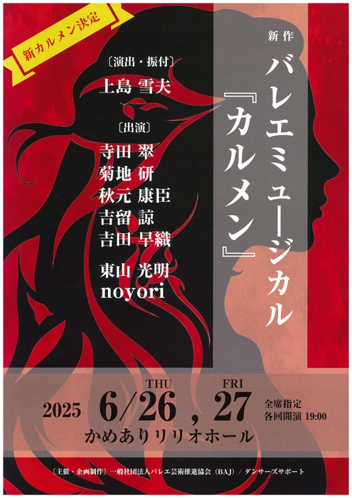 新作バレエミュージカル『カルメン』が2025年6月26日 (木) 〜 2025年6月27日 (金)にかめありリリオホール(東京都 葛飾区 亀有 三丁目26番1号)にて上演されます。
