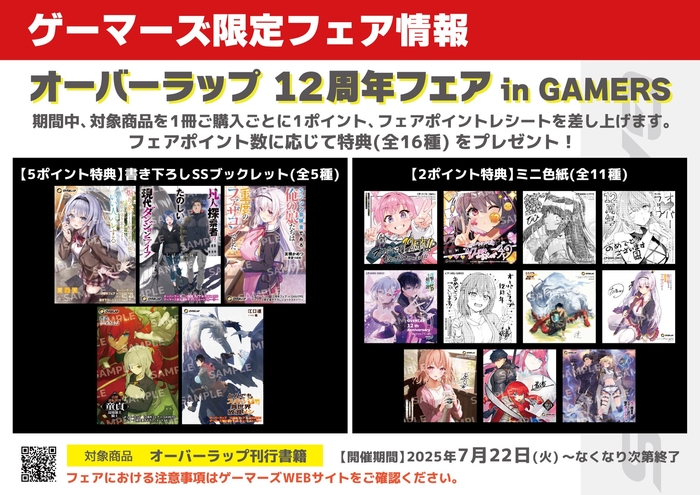 一部書店様では限定特典がもらえるオーバーラップ12周年フェアも開催いたします。
