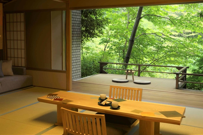 自然に抱かれた全室リバービューの宿。須雲川のせせらぎやそびえたつ湯坂山の雄大さに酔いしれつつ、美しい箱根寄木細工に触れる滞在を楽しめます。