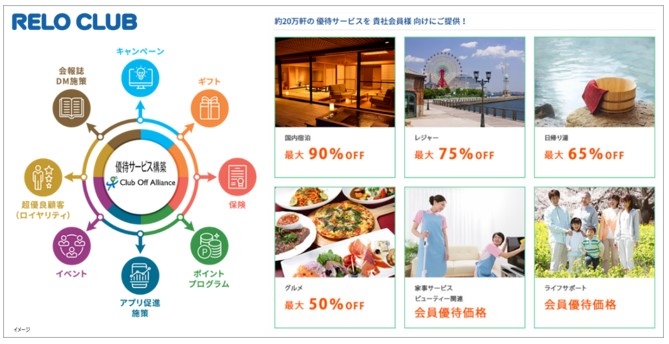 リロクラブのCRM事業は「クラブオフ(Club Off Alliance)」において、「福利厚生倶楽部」でのノウハウを活かした様々なサービスを展開しております。特に、今回は人材派遣会社やアルバイト・パート向けに開発された福利厚生サービスでの実績が、この度の日本初の全在学生に向けた福利厚生サービスの展開に結実いたしました。