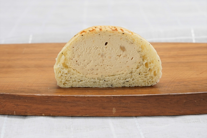 特徴:みんなが大好きな「焼き芋」をイメージしたパン生地の中に、サツマイモで作ったお芋餡と、ビターな国産くり蜂蜜を使用したカスタードクリームをたっぷり詰め込んだクリームパン。アクセントに入れた黒ゴマが香ばしく、プチプチした触感も楽しめます。クリームパンと一緒に温かいお茶を淹れてほっこり楽しむのもおすすめです。