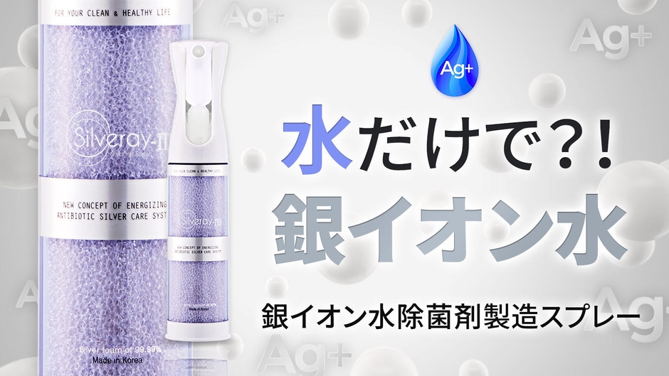 電気や薬品を使う事なく、銀イオン水を身近に使用できる「シルバーレイ3」は、銀イオン水特有の効果を身近に使用できる銀イオン水製造スプレーとなっております。