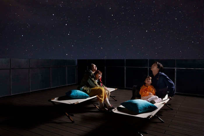 本プランでは、通常では立ち入ることのできない夕方から明け方までの時間に、雲海テラスを貸し切ってキャンプをします。夜は満天の星を、早朝は目の前に広がる雲海と日の出の絶景を家族だけで堪能できます。早朝の雲海が出る時間には、雲海の発生のメカニズムやその日の状況をスタッフが解説する「雲海ガイド」をプライベートで実施。また、テントやイス、テーブルなどは全てスタッフが準備から片付けまでを行うため、キャンプを手軽に楽しむことができます。