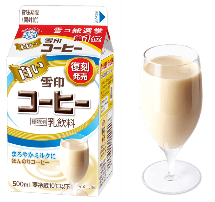このたび「雪印コーヒー」発売60年プロモーションの一環として、2022年3月から4月にかけて実施した、「雪印コーヒー500ml」シリーズ過去発売商品の人気投票企画「雪コ総選挙」の結果、『白い雪印コーヒー』が第1位を獲得しました。
