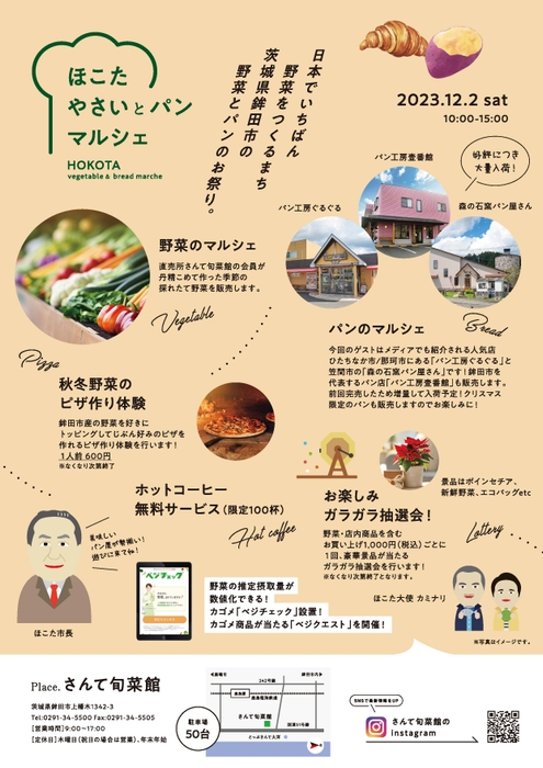 前回大好評だった『ほこたやさいとパンマルシェ』が来月12月2日(土)に開催決定。今回は大人気パンも大量入荷!もちろん新鮮野菜が揃う「野菜のマルシェ」も売り切れ必須!その他お楽しみイベントいっぱいで皆様のお越しを心よりお待ちしております!