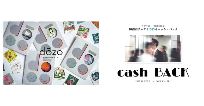 本プランでご宿泊のお客様には、ギフトサービス「dōzo」のギフトチケットを4テーマから1泊につき1つお選びいただきフロントにてプレゼントします。ギフトはWebでの手続きで指定の住所に届くので簡単に受取る事が出来ます。自分へのご褒美に、大切な人への手土産に、本プランをぜひご利用ください。