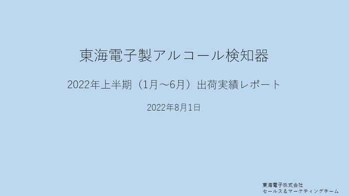 飲酒運転防止のためのアルコール検知器及びIT点呼システムを開発・販売する東海電子株式会社(本社:静岡県富士市 代表取締役 杉本 哲也)は、この度、今年2022年度上半期のアルコール検知器出荷に関するレポートを公表いたします。