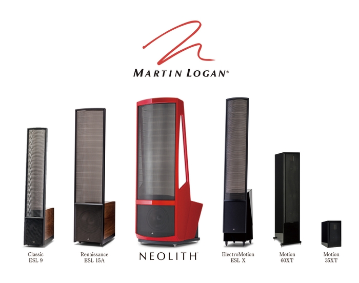 マーティン・ローガン創業30周年を記念して企画され技術の粋を結集したフラッグシップモデル Neolithをはじめ、独自のESL技術と最新オーディオ技術を搭載したマスターピースシリーズ ESL 15A/ESL 9や、静電型スピーカーをより手軽に楽しめるエレクトロモーション ESL X、フロアスタンディング/ブックシェルフタイプのモーション 60XT/35XTなど、幅広いモデルをラインナップ。静電型スピーカー、マーティン・ローガンならではの音の魅力を、より多くのオーディオファイルの皆様にお届けします。