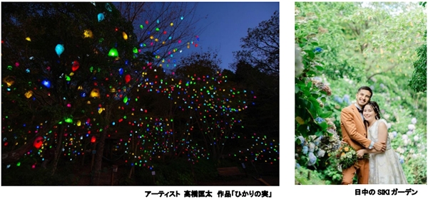 六甲山観光株式会社(本社:神戸市 社長:寺西公彦)が運営する「ROKKO森の音ミュージアム(博物館相当施設)」で実施中の「ウェディングフォトプラン」に秋限定のフォトスポットが加わります。施設内「SIKIガーデン~音の散策路~」(以下、SIKIガーデン)に、期間中展示される、高(※1)橋匡太(たかはしきょうた)のアート作品「ひかりの実」の幻想的な光の空間で、特別なウェディングフォトを撮影していただけます。