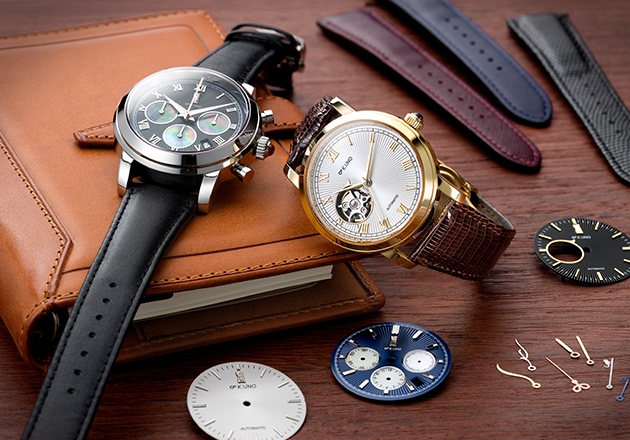 このほどの新作は、ケース各2種類、文字盤各2種類、ベルト各3種類から選ぶことができ、組み合わせ方は全12通りです。裏ぶたへは記念日や名前、メッセージなどの刻印が可能で、自分へのご褒美や特別なプレゼント、大切な人とのお揃いなど、世界にひとつだけの時計を作ることができます。