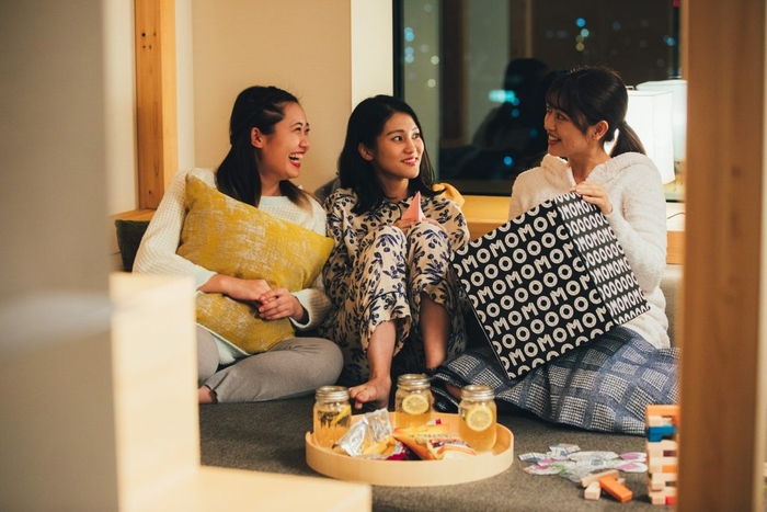 滞在中は、香り引き立つこだわりのコーヒーを何度もおかわりできるほか、客室にはおしゃべりのお供にぴったりなハーブティーやご近所さんの老舗和菓子店の和スイーツが用意されています。さらに、お泊まり会には必須の盛り上げサポートグッズも利用でき、親しい人とのお泊まりが楽しくなるしかけが満載のプランです。