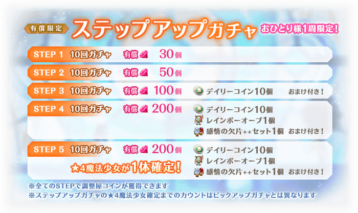 ※STEP5での★4魔法少女について、ピックアップ対象の魔法少女が確定するわけではございません。
